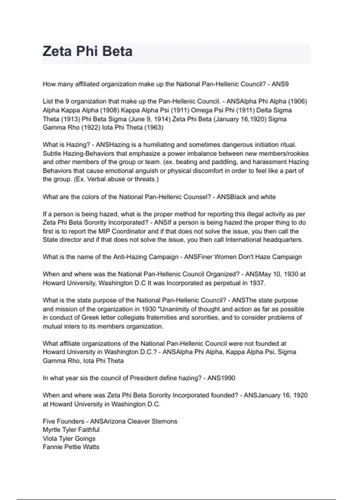 Zeta Phi Beta Exam Questions and Answers Graded A+ 2024/2025 (ALL BUNDLED HERE!!!)