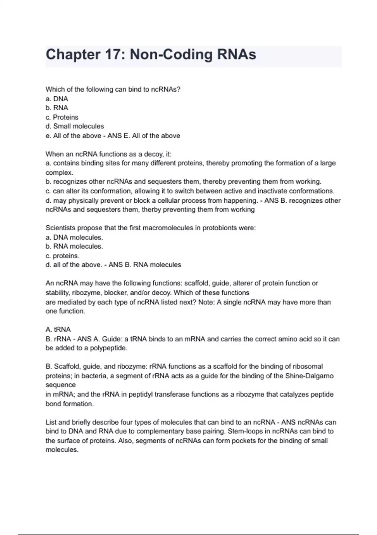 Chapter 17: Non-Coding RNAs Exam 2024/2025 Questions With Completed & Verified Solutions.