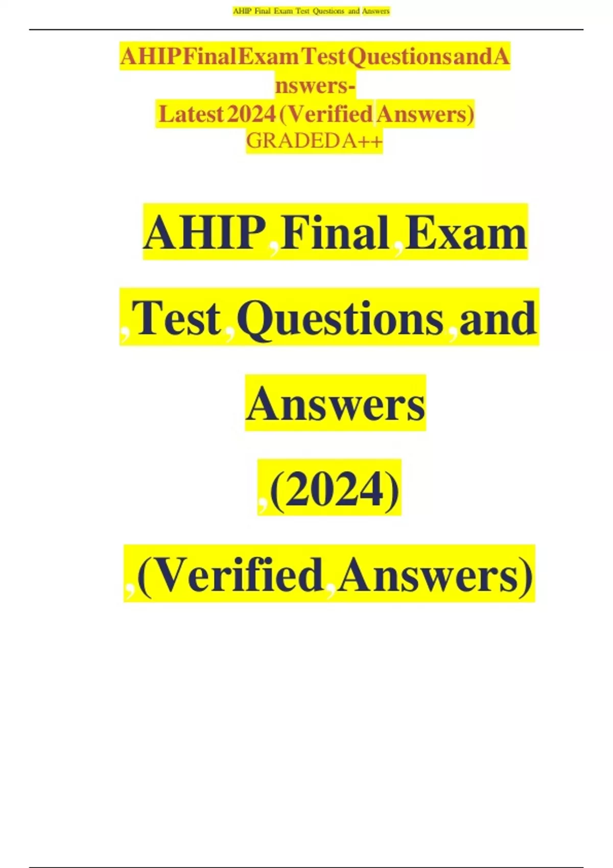 AHIP Final ExamTest QuestionsandAnswers- Latest 2024 (VerifiedAnswers) GRADEDA++