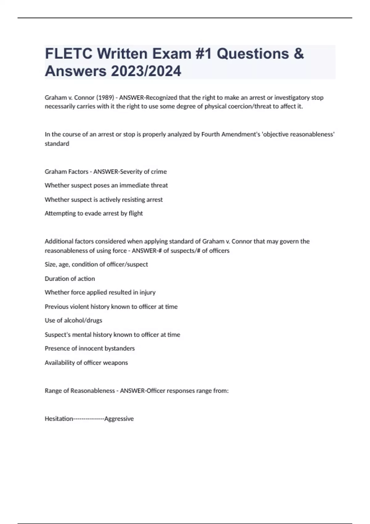 FLETC Written Exam #1 Questions & Answers 2023/2024