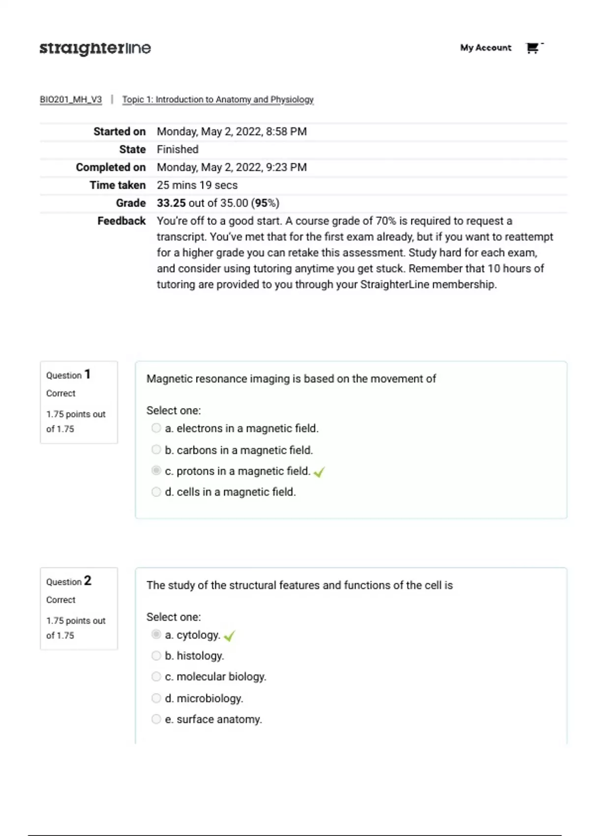 Straighterline Anatomy and Physiology BIO201 Bundle