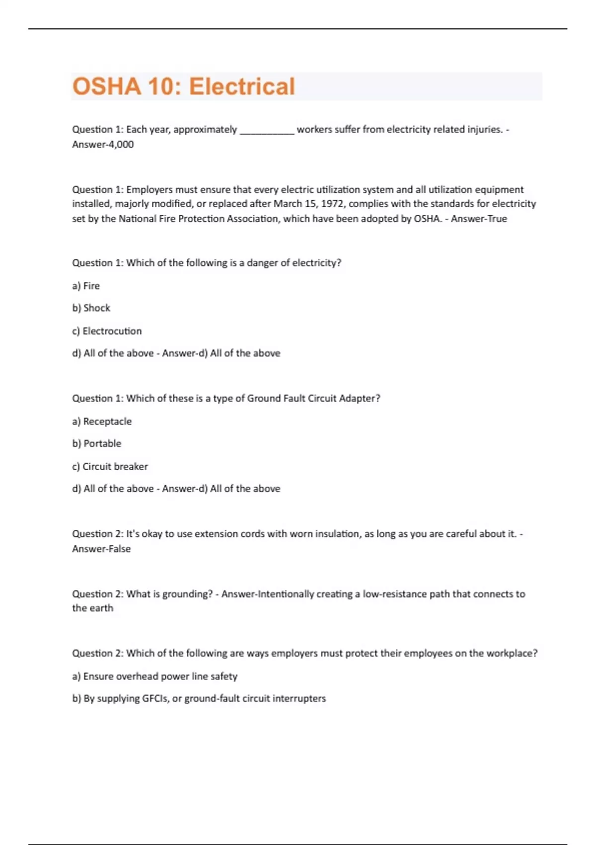 OSHA 10: Electrical Questions and Answers 2024 ,2025 Fully Solved 100%