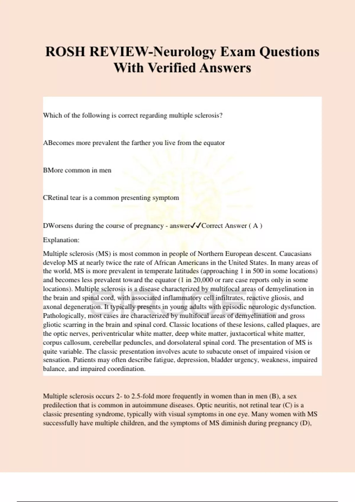 ROSH REVIEW-Neurology Exam Questions With Verified Answers