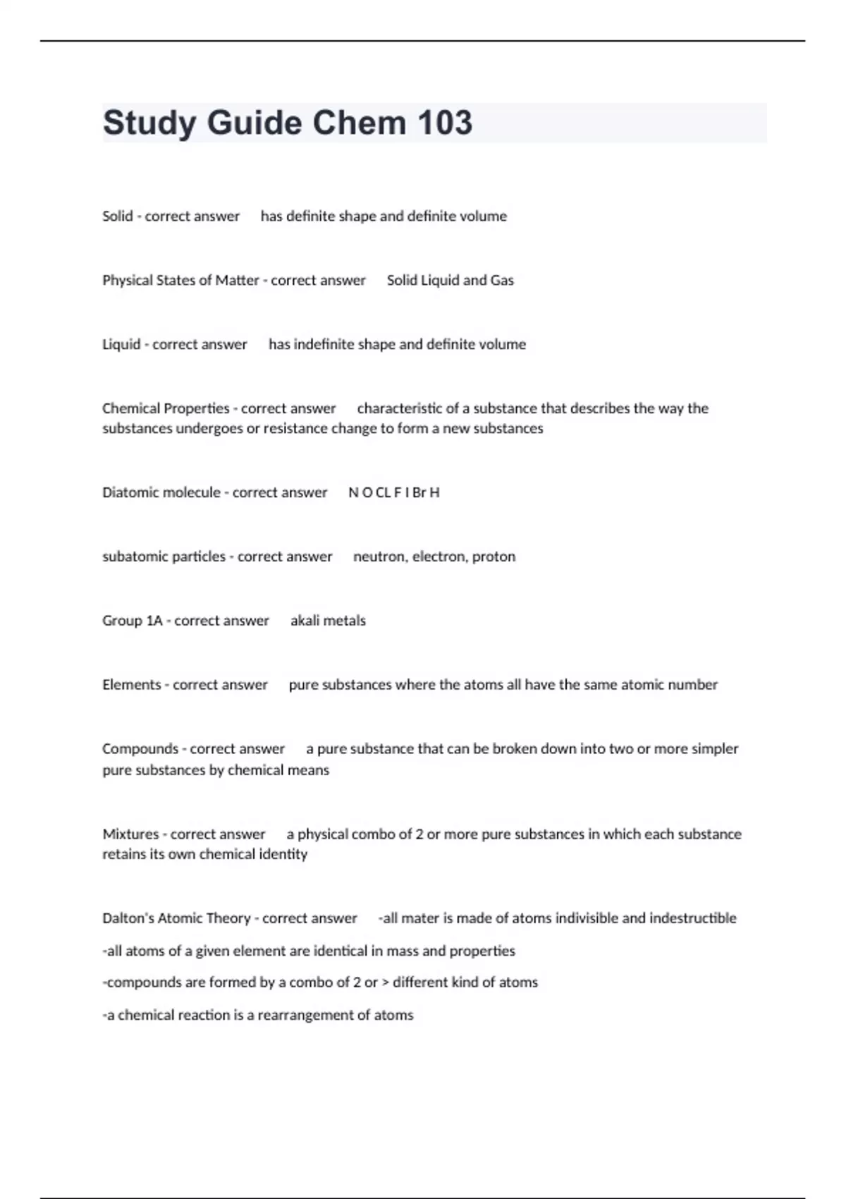 1 Exam (elaborations) Chem 103 Exam 1 Ch1-5 Questions And 100% Correct Answers Guaranteed Success. 2 Exam (elaborations) UD Chem 103 Exam 1 Questions And Correct Verified Answers Graded A+. 3 Exam (elaborations) CHEM 103 EXAM 1 @ IU Comprehensive Questions And Detailed Answers. 4 Exam (elaborations) Chem 103 Chapters 1-3 Practice Questions And C