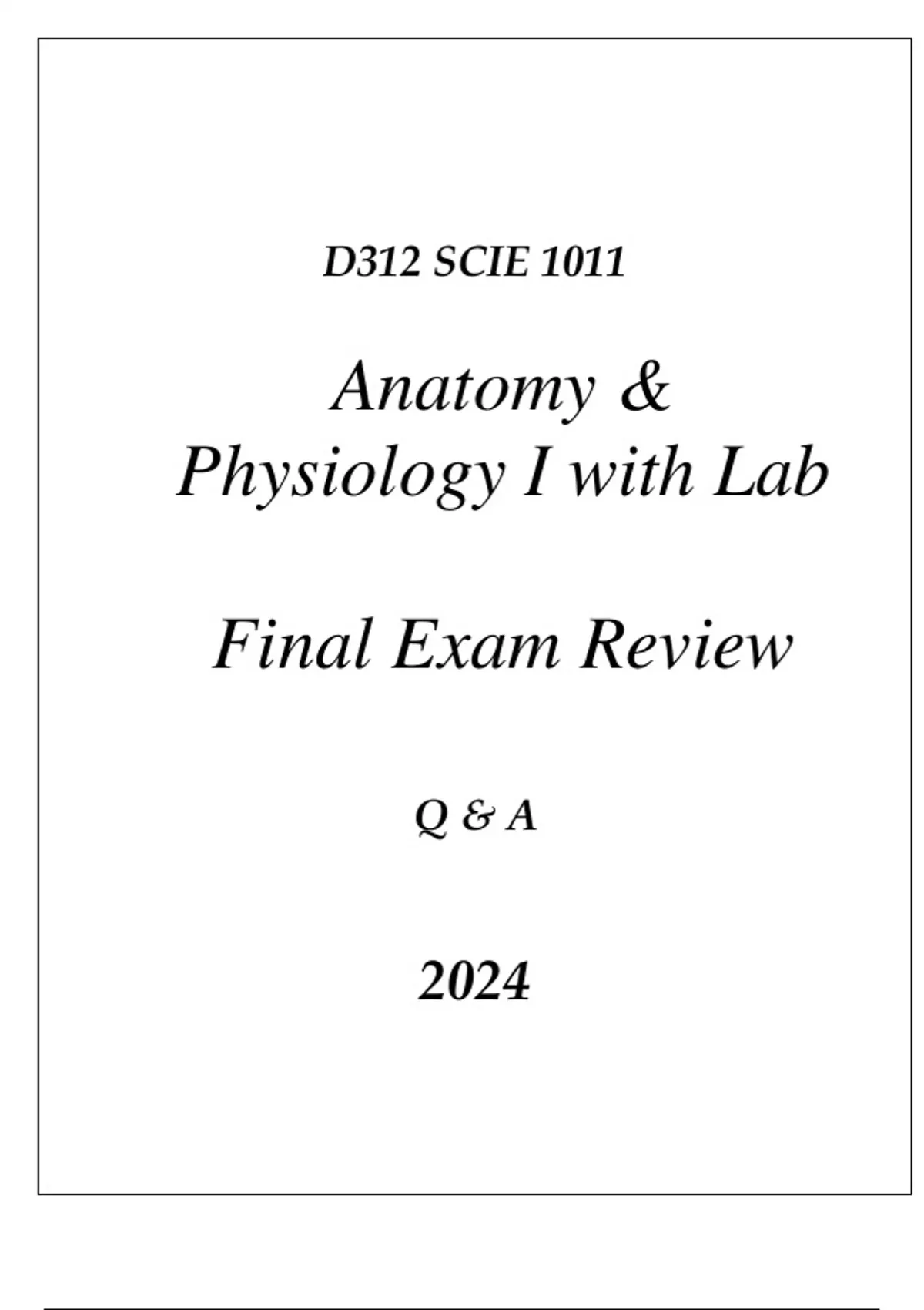 (WGU D312) SCIE 1011 ANATOMY & PHYSIOLOGY I WITH LAB FINAL EXAM REVIEW Q & A 2024