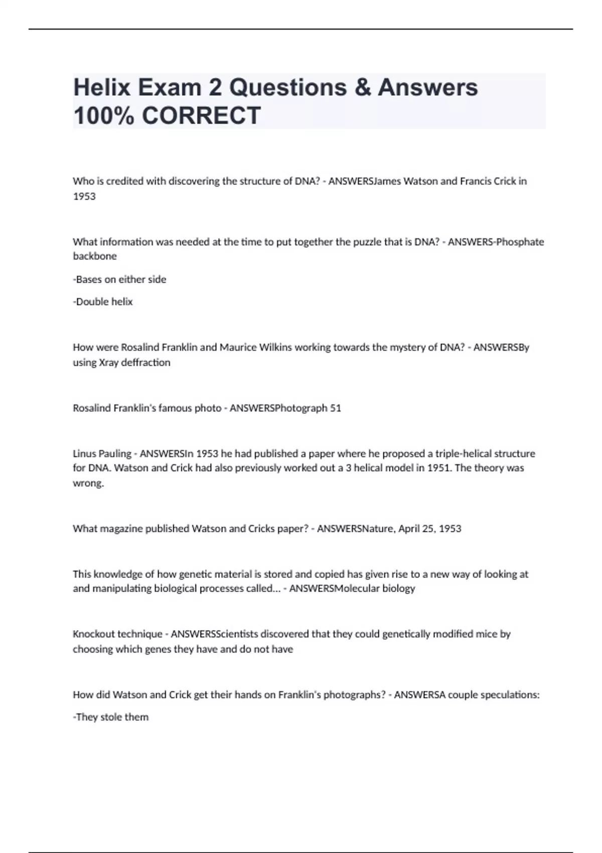 Helix Exam 2 Questions & Answers 100% CORRECT