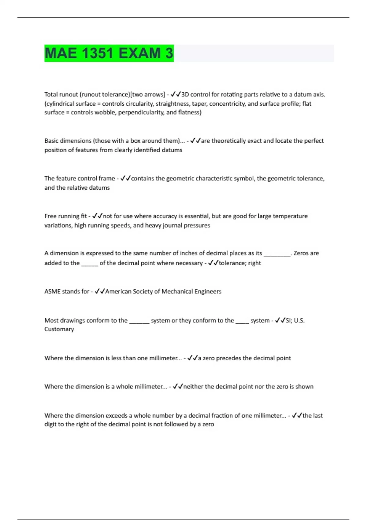 MAE 1351 Complete Package Deal With Verified Study Solutions Rated A+
