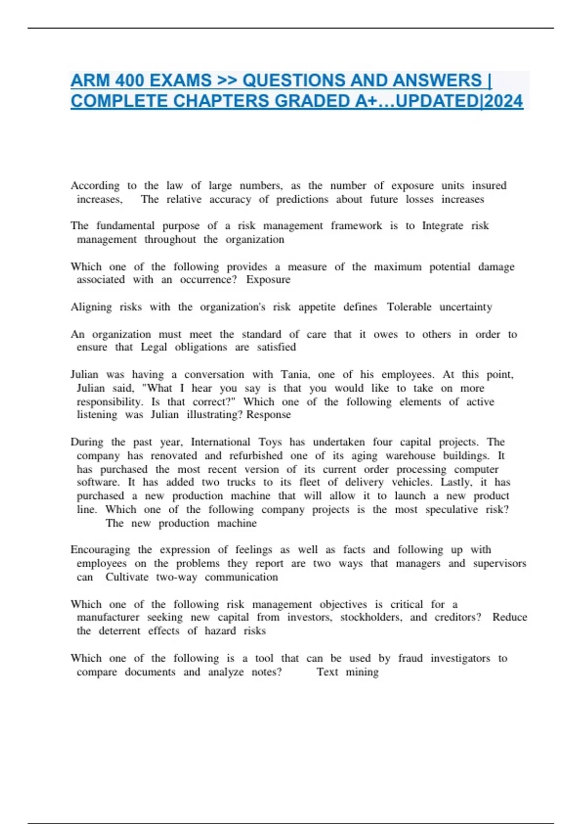 PACKAGE DEAL FOR >> ARM 400 EXAM 2024|25 QUESTIONS AND ANSWERS 100% CORRECT.
