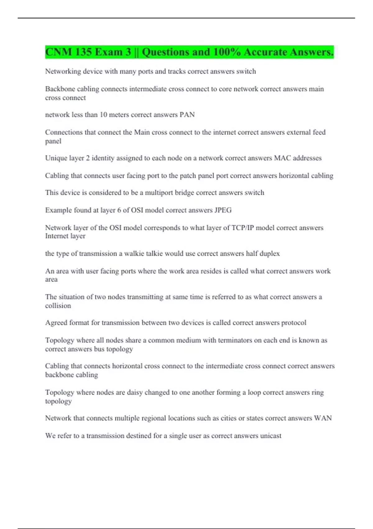 WHNP/CNM Board Prep || with Error-free Solutions. CNM || All Answers Are Correct 100%. CNM 135 Exam 3 || Questions and 100% Accurate Answers. CNM 232 final review || A+ Guaranteed. CNM 232 MIDTERM EXAM REVIEW || Questions and 100% Verified Answers. CNM 233 final study guide || with A+ Guaranteed Solutions. CNM 241 || with 100% Errorless Answers. CN