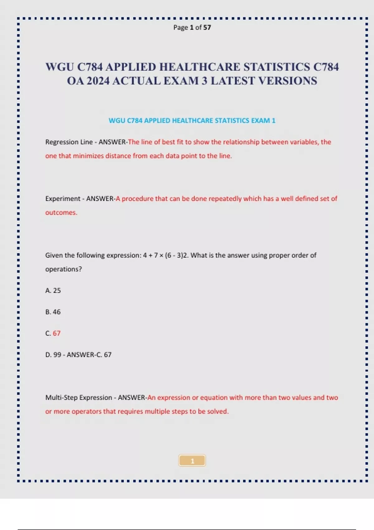 WGU C784 APPLIED HEALTHCARE STATISTICS OA EXAM LATEST ACTUAL EXAM 1, 2 & 3 QUESTIONS AND ANSWERS