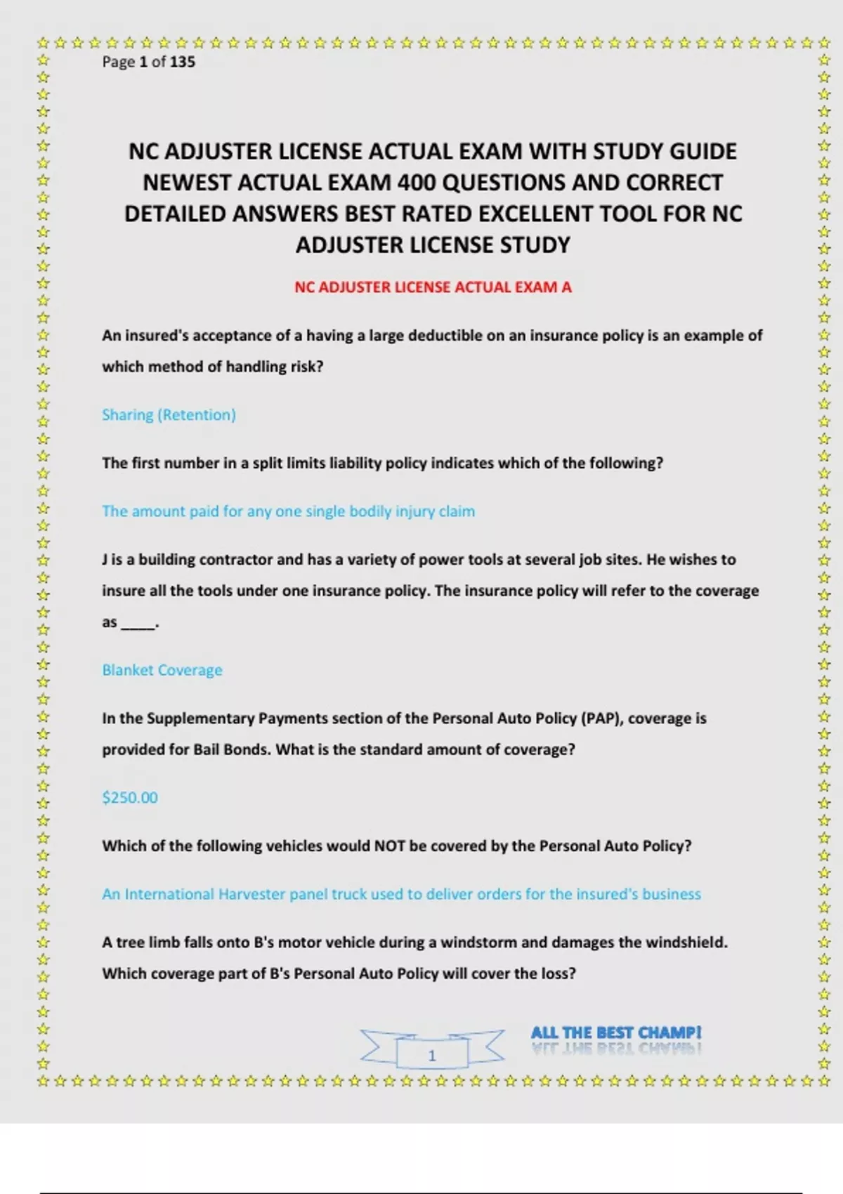 NC ADJUSTER LICENSE EXAM