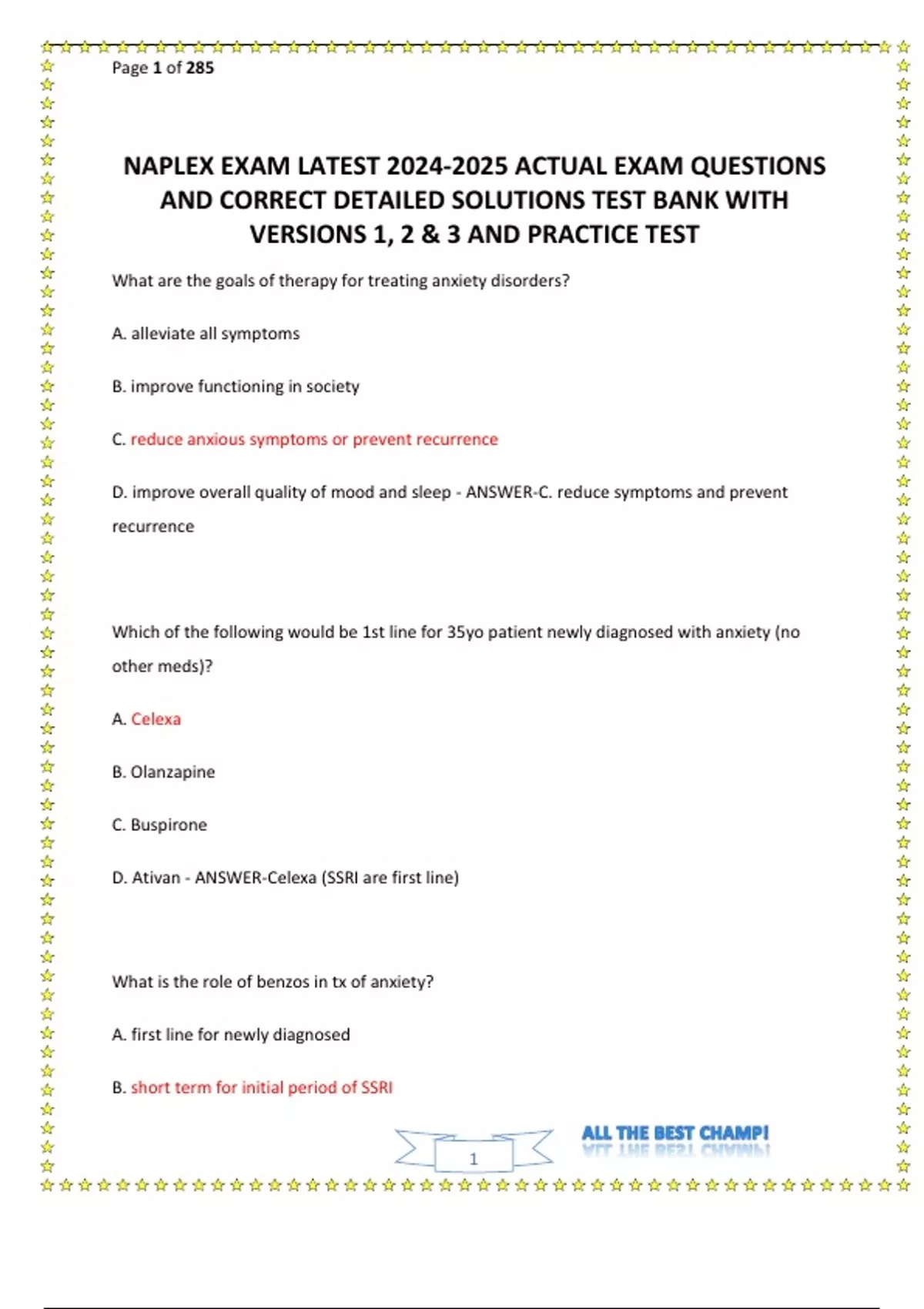NAPLEX EXAM LATEST ACTUAL EXAM QUESTIONS AND CORRECT DETAILED SOLUTIONS TEST BANK WITH VERSIONS 1, 2 & 3 AND PRACTICE TEST