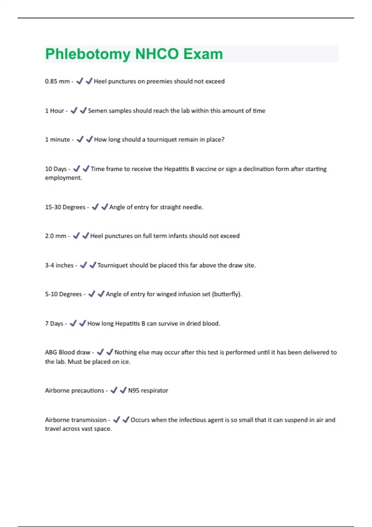 NHCO Phlebotomy Practice Questions And Answers With Verified Solutions Graded A+