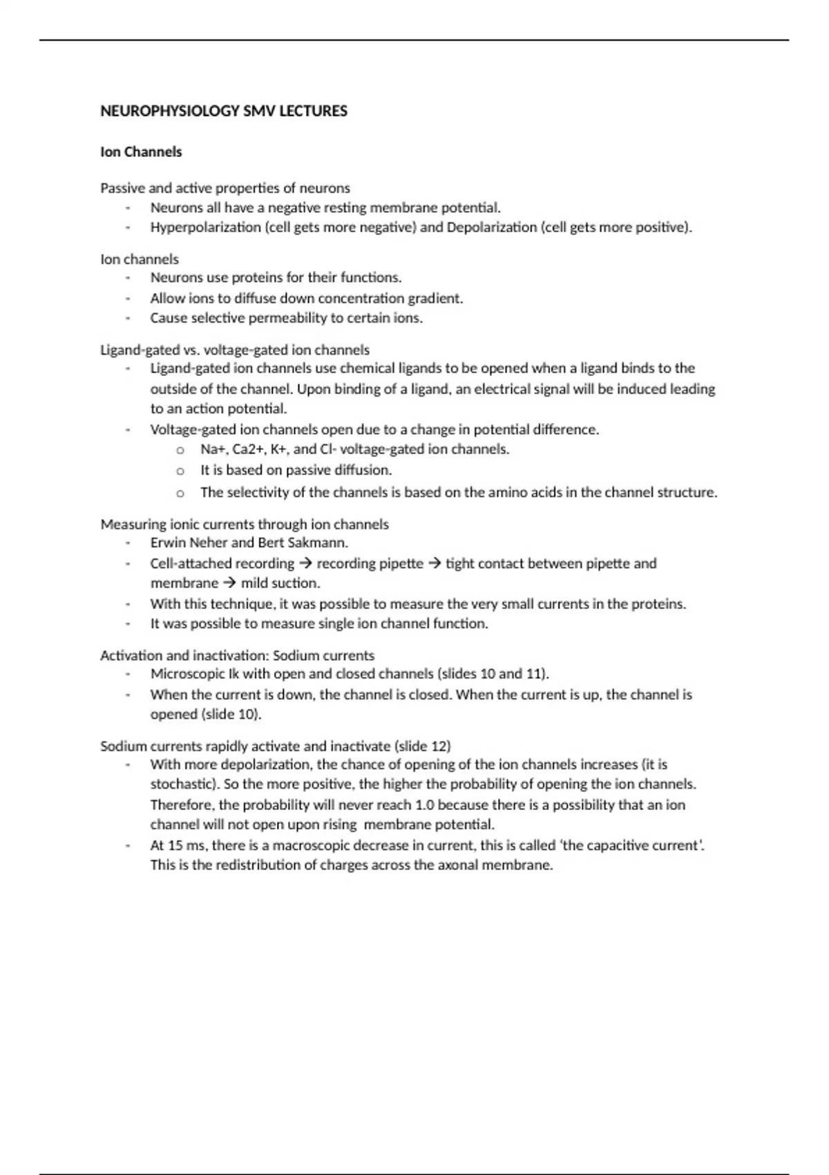 Summary Neurophysiology part of course From Molecule to Mind Neurosciences master VU