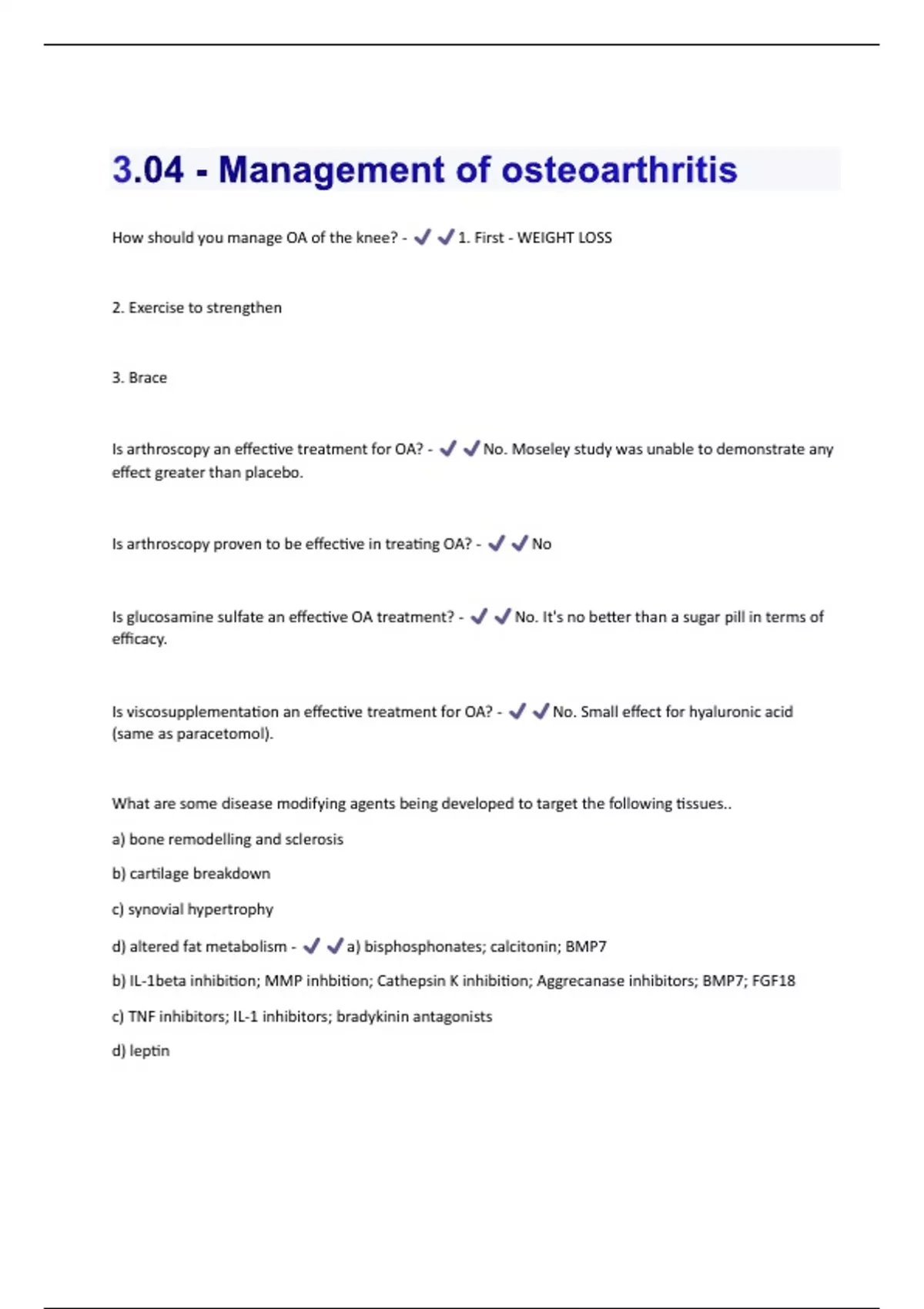 3.04 - Management of osteoarthritis Questions and Answers 100% Verified
