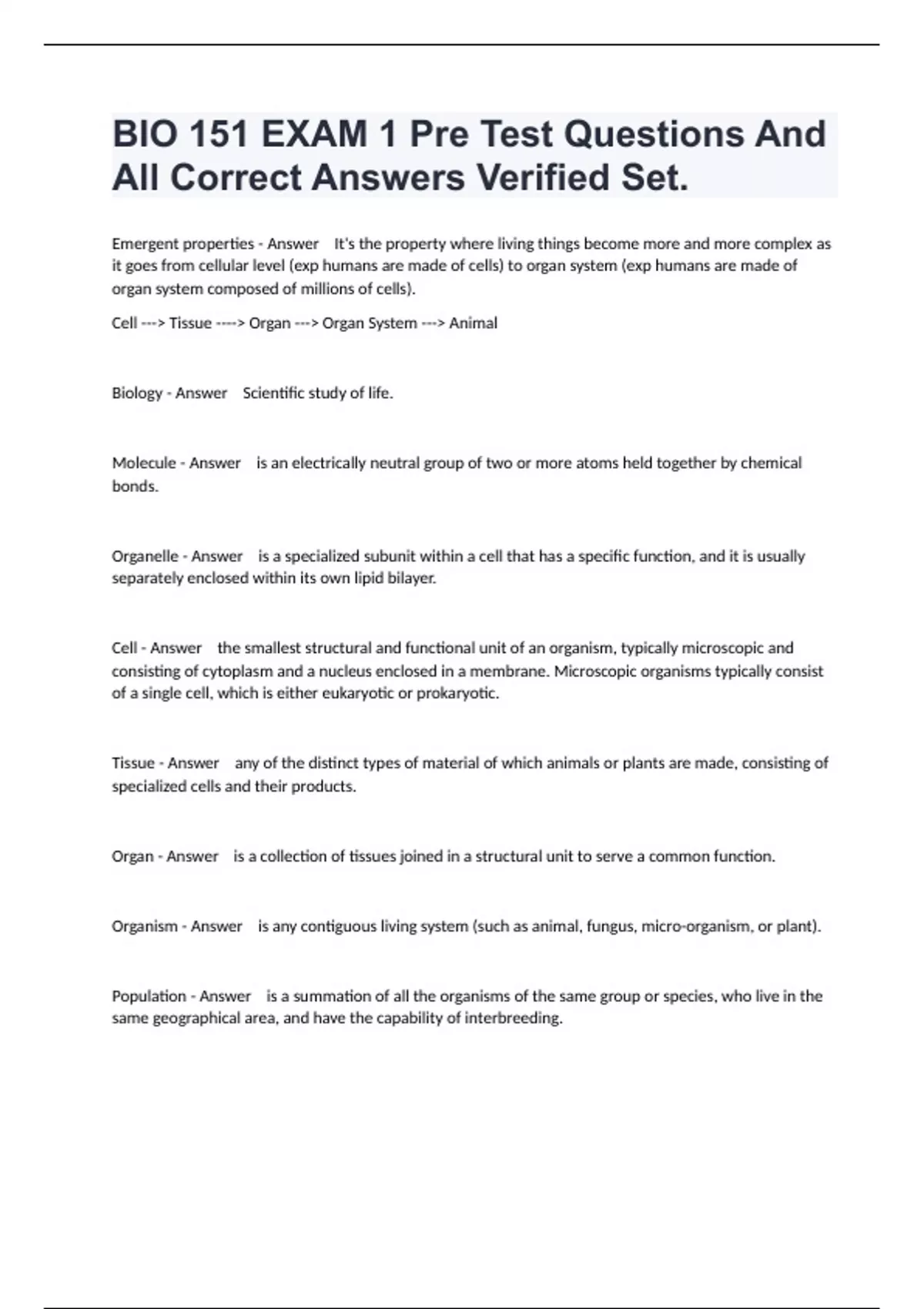 BIOD 151 Study Guide Exams(2024) Compilled With 100% Correct Answers Package Deal Bundle.
