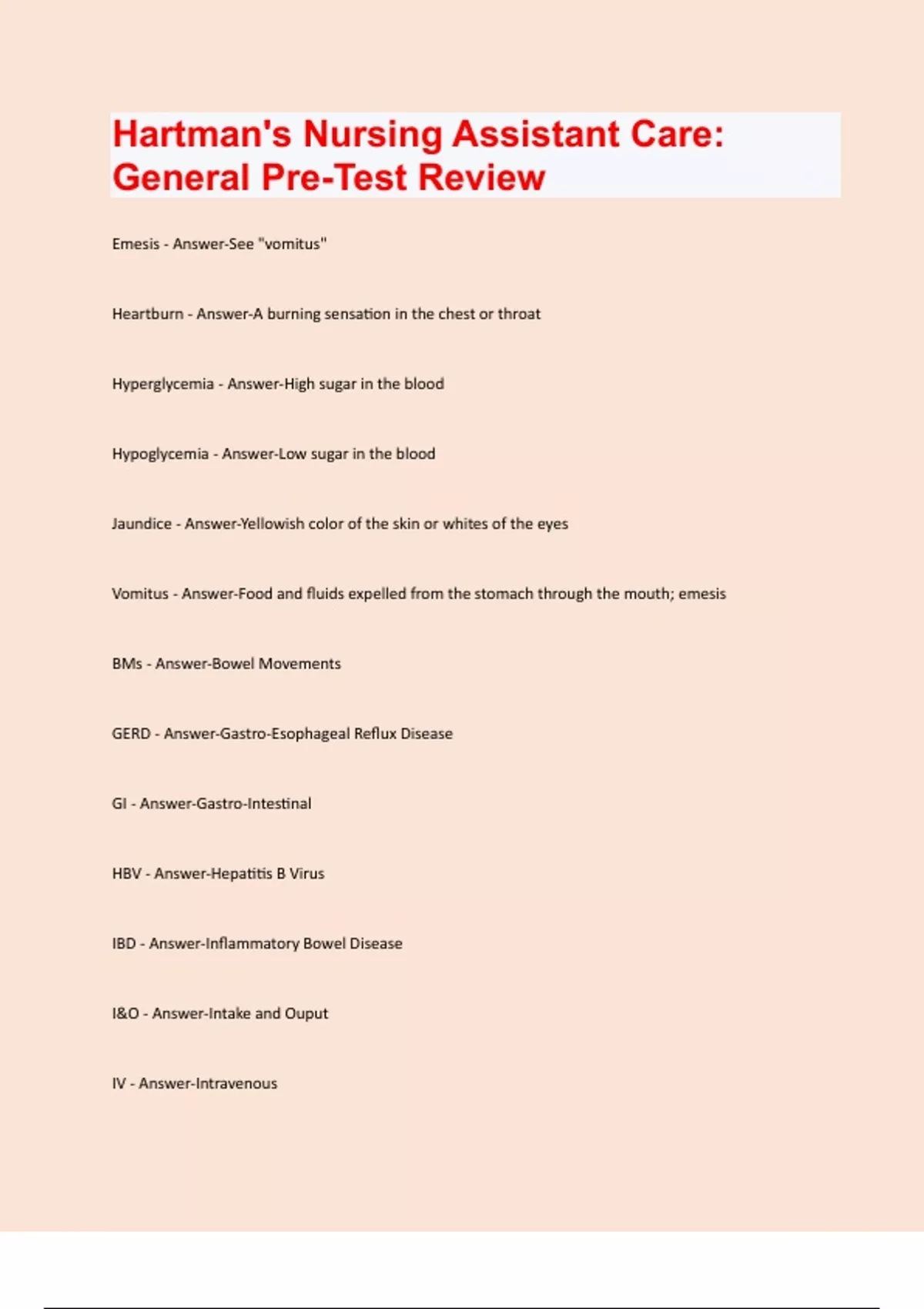 Hartman's Nursing Assistant Care: General Pre-Test Questions Rated 100% Correct!!