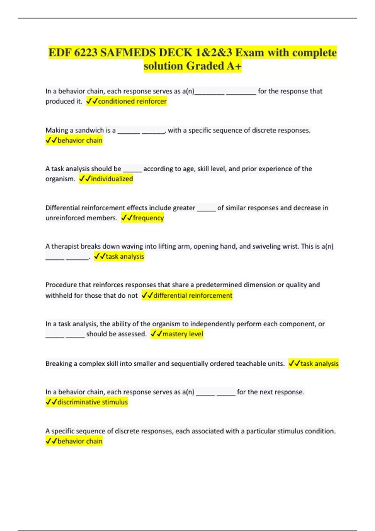 EDF 6223 SAFMEDS DECK 1&2&3 Exam Questions with complete solution Graded A+