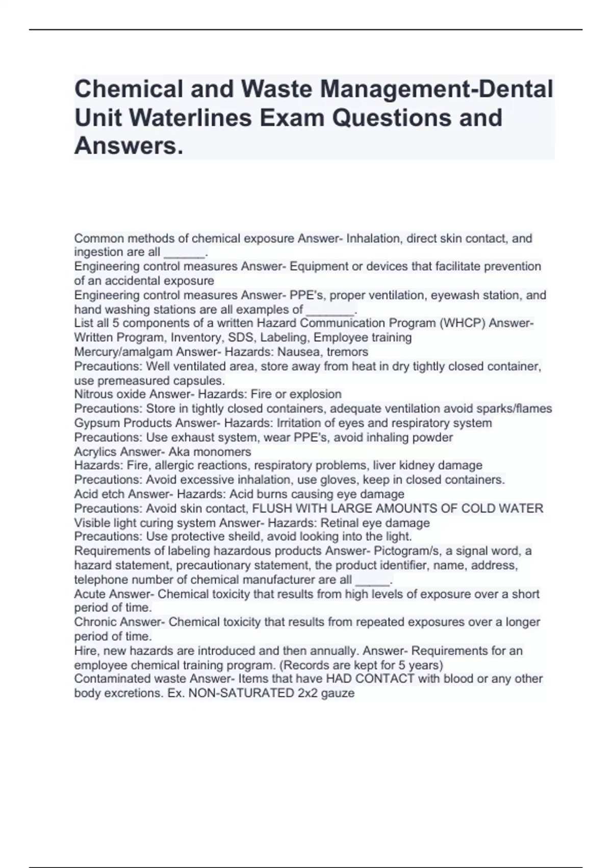 Chemical Engineering 1100 Final Exam Questions and Answers,Chemical Engineering Exam Questions with Solutions,Chemical engineering EXAM Questions with Correct Answers,Chemical Engineering Quiz with Questions and Solutions,Chemical Engineering Exam Review Questions and Answers,Chemical Engineering TEST (S2) Questions and Answers,
