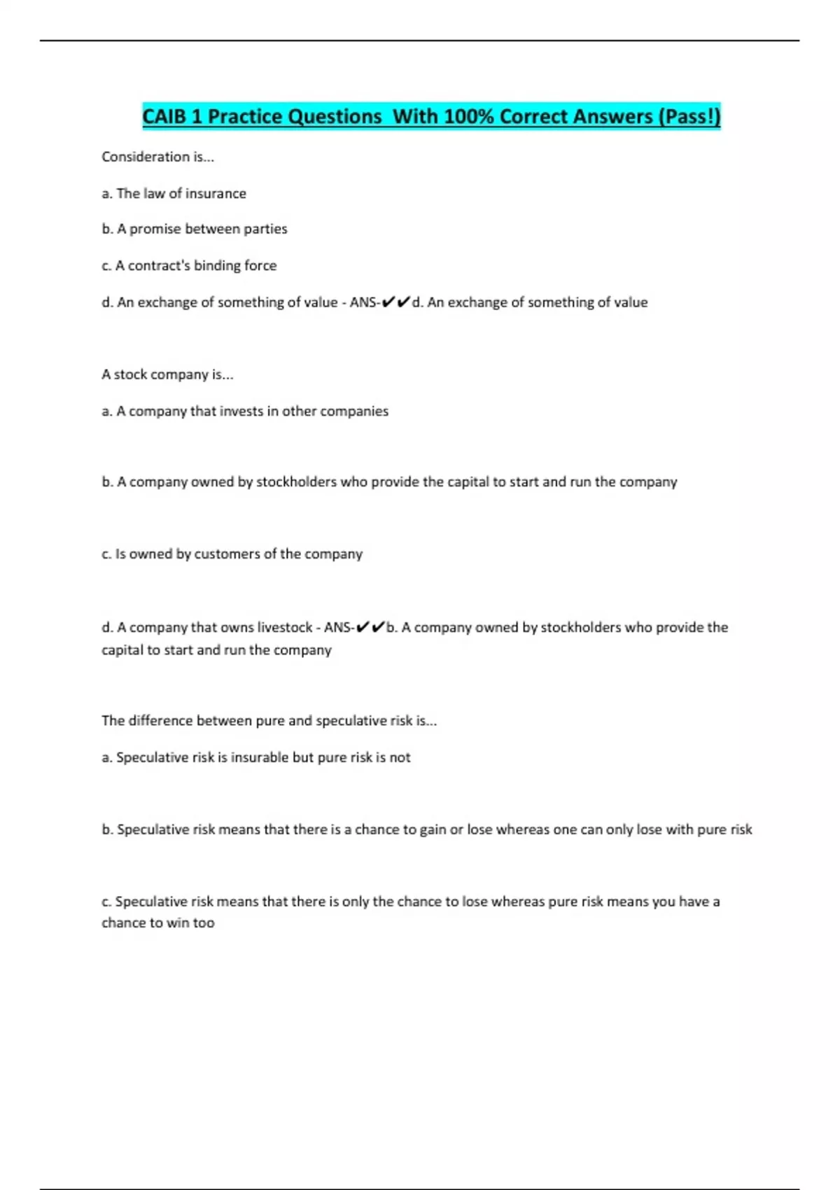 CAIB 1 Practice Questions With 100% Correct Answers (Pass!), Practice Exam for CAIB 1 Questions And Answers, CAIB 2 Final Exam Practice Test Questions & Answers 2024, CAIB 2 Practice Exam Questions And Answers Already Passed 100%, CAIB 2 - Chapter 1 Quest