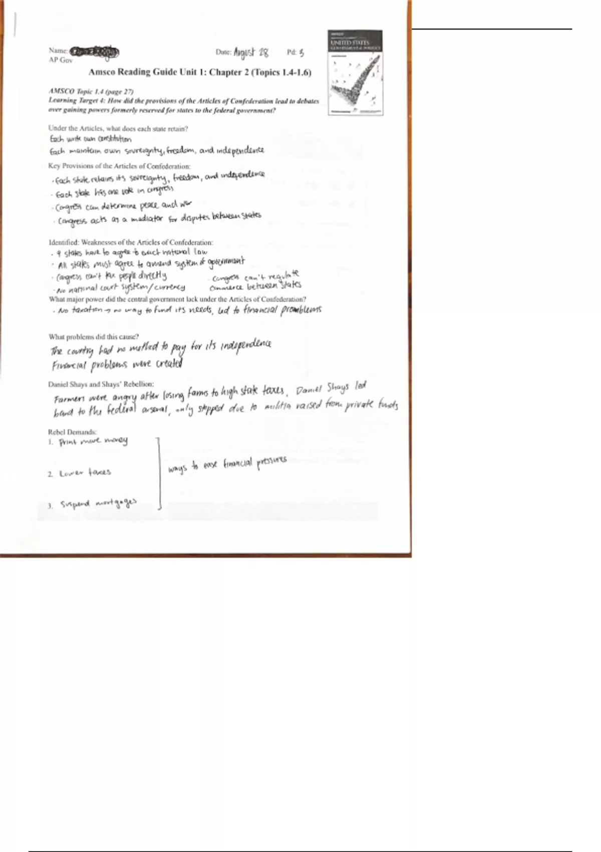 AP US Government and Politics - AMSCO Reading Guide and Vocabulary - All Units