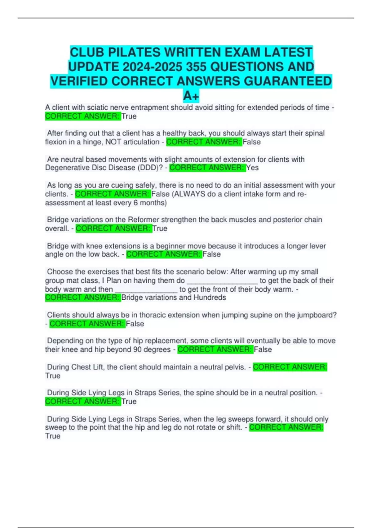 ALL CLUB Pilates EXAMS BUNDLED TOGETHER