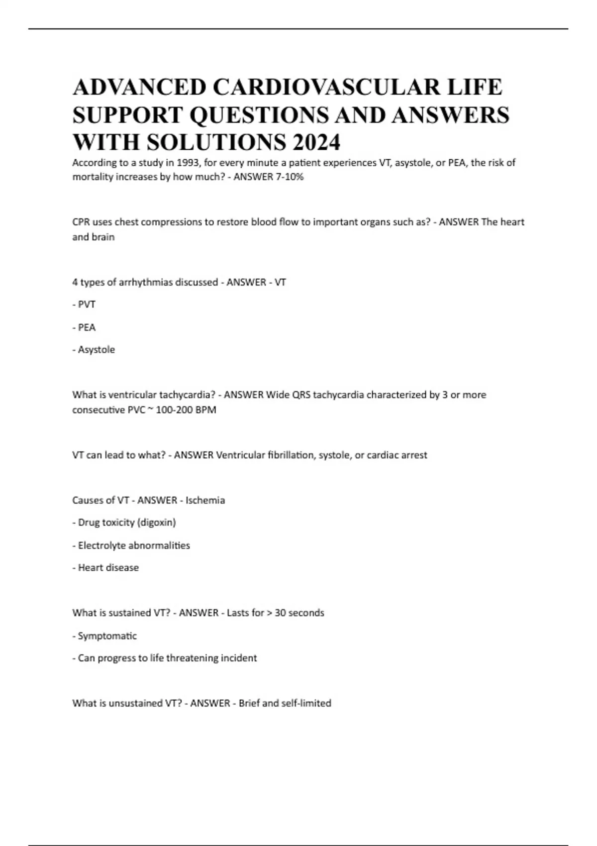 ADVANCED CARDIOVASCULAR LIFE SUPPORT PACKAGE DEAL QUESTIONS AND ANSWERS WITH VERIFIED SOLUTIONSUPDATED 2024