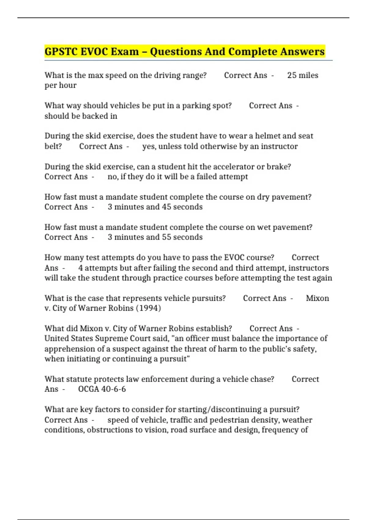 GPSTC EVOC Exam – Questions And Complete Answers