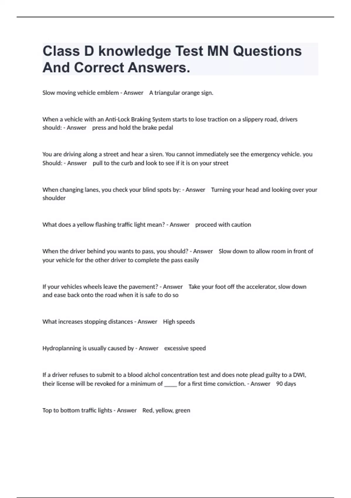 1 Exam (elaborations) MN Motorcycle Permit Training Exam Questions With Verified And Revised Solutions. 2 Exam (elaborations) Minnesota Driver s Manual: Chapter 2 Practice Exam Answered Correctly. 3 Exam (elaborations) MN DWI Knowledge Test Questions And 100% Accurate Answers. 4 Exam (elaborations) Minnesota Driver s Manual Comprehensive Exam An