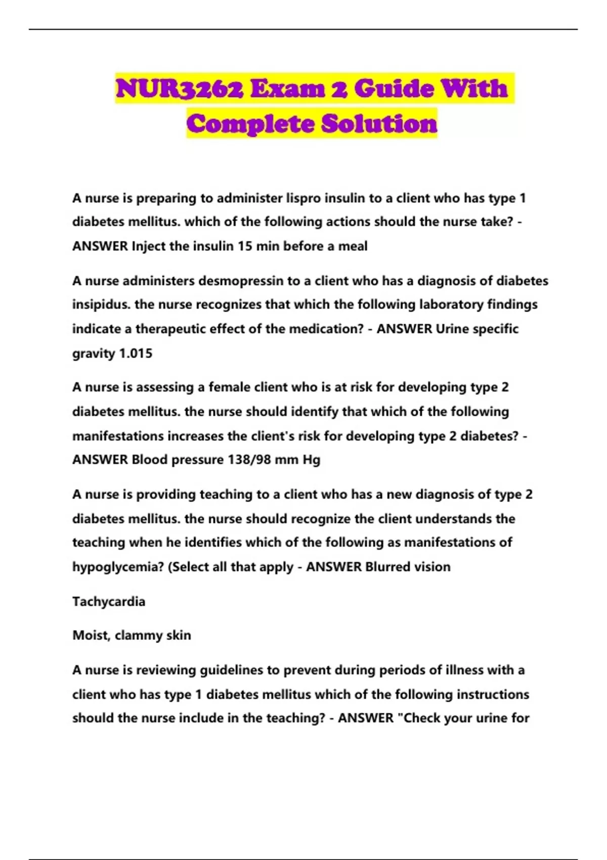 NUR 3262 Exam 3 Study Guide With Complete Solution