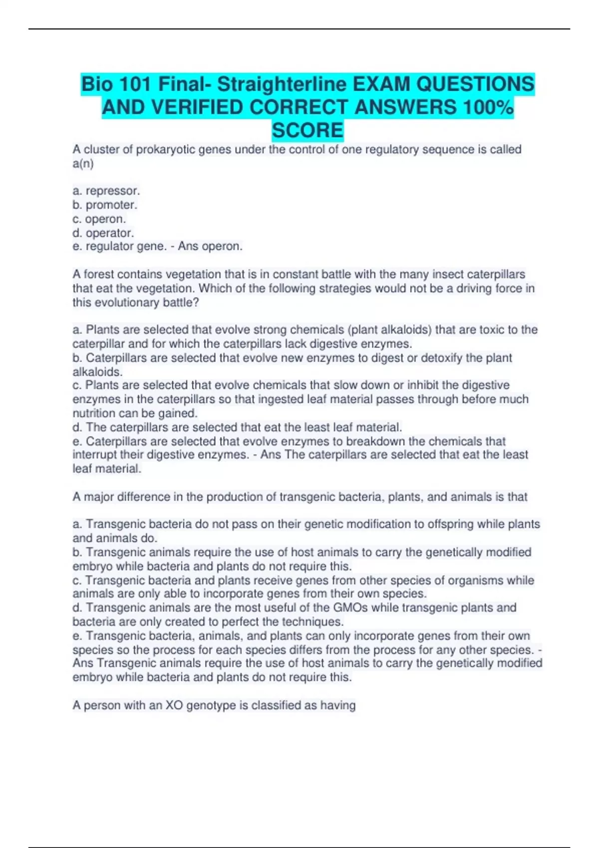 BIOD 101 Module 1-5 (EXAM) Latest Update Actual Exam