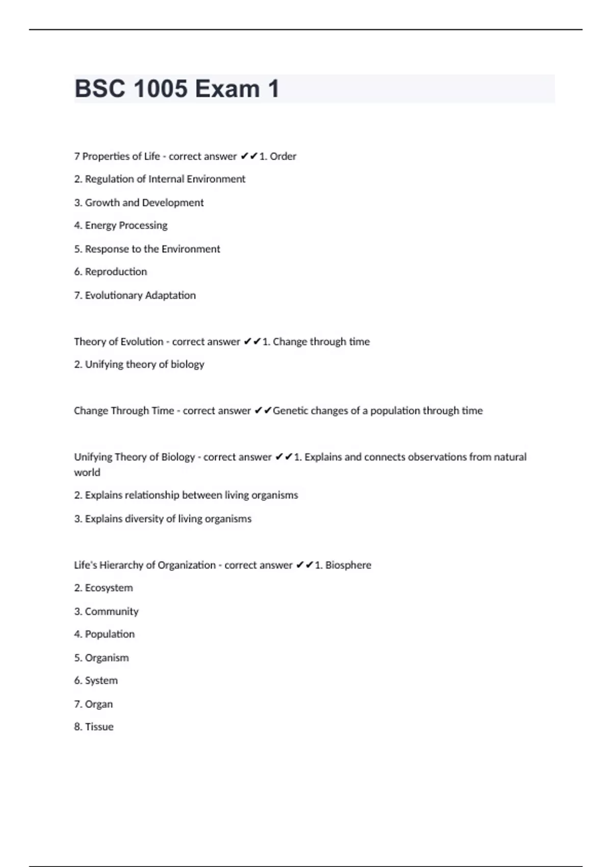 BSC 2010 Exam 1 Review Questions and answers graded A+