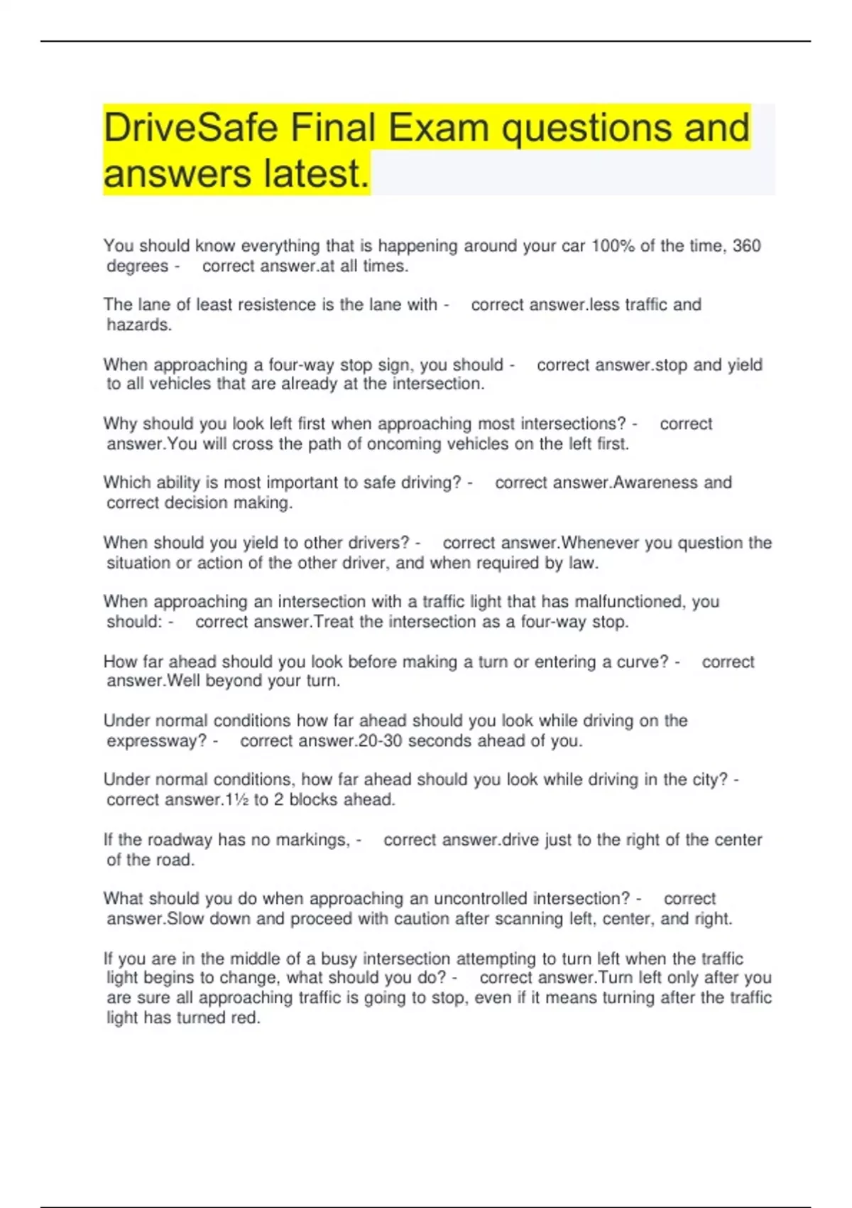 Drive Safe Questions With Complete Solutions.Drive Safe Questions And Answers Verified And Updated.Drive Safe Today Questions And Answers Latest.Drivesafeonline Defensive Driving 1 Hr Questions And Answers Well Illustrated.