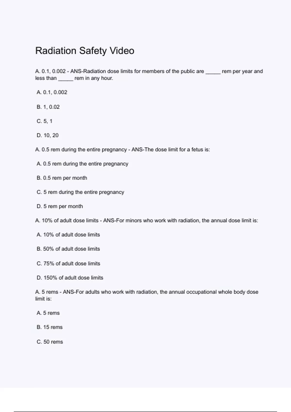 Radiation Safety Video Questions and 100% Verified Correct Answers Guaranteed A+, Complete Document for Exam