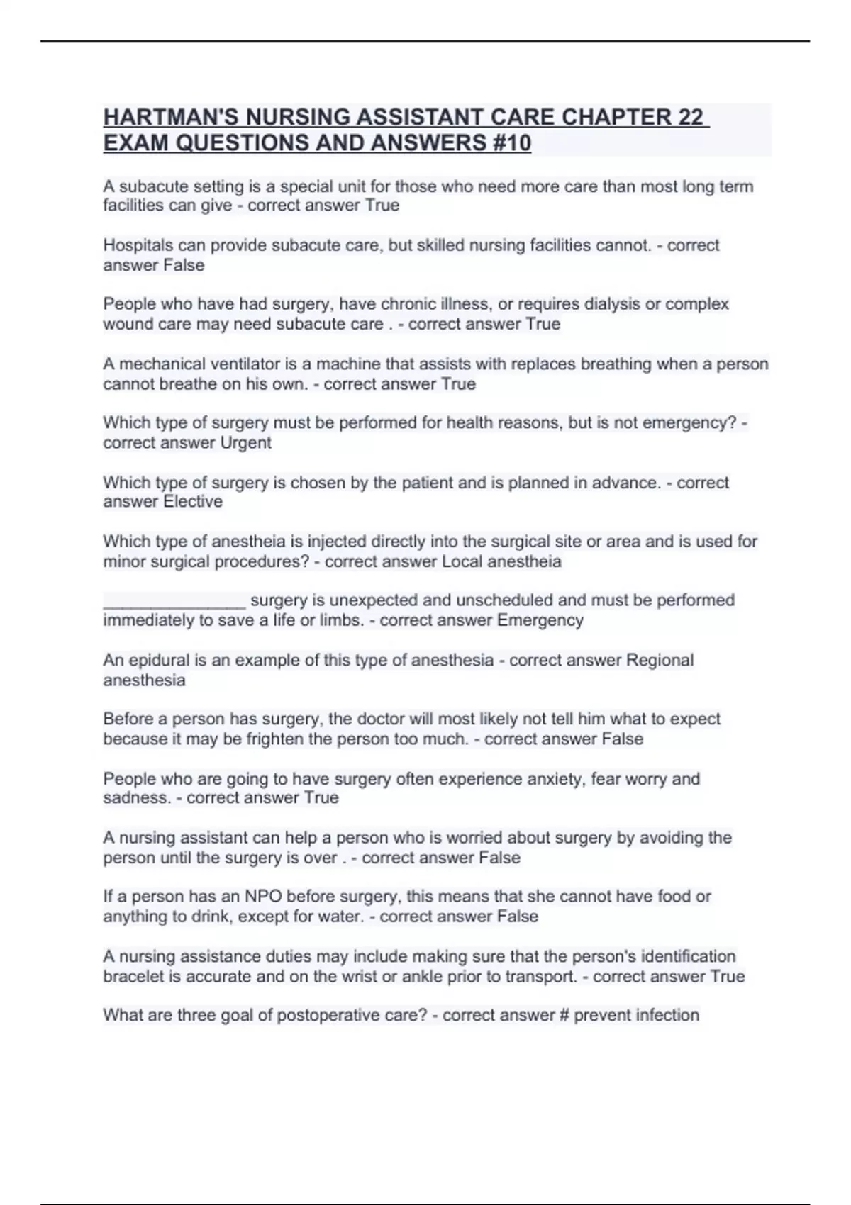 HARTMAN-S NURSING ASSISTANT CARE CHAPTER 1 & 2 EXAM SOLVED -18