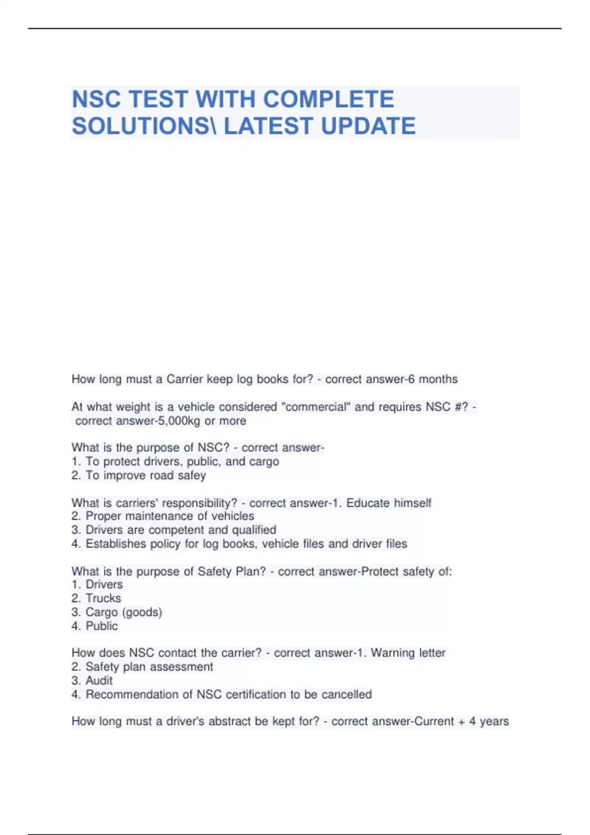 A CLEAR UPDATE OF ALL THAT ID REQUIRED TO PASS IN NSC TESTS|A+ GRADESWITHCOMPLETE ANSWERS