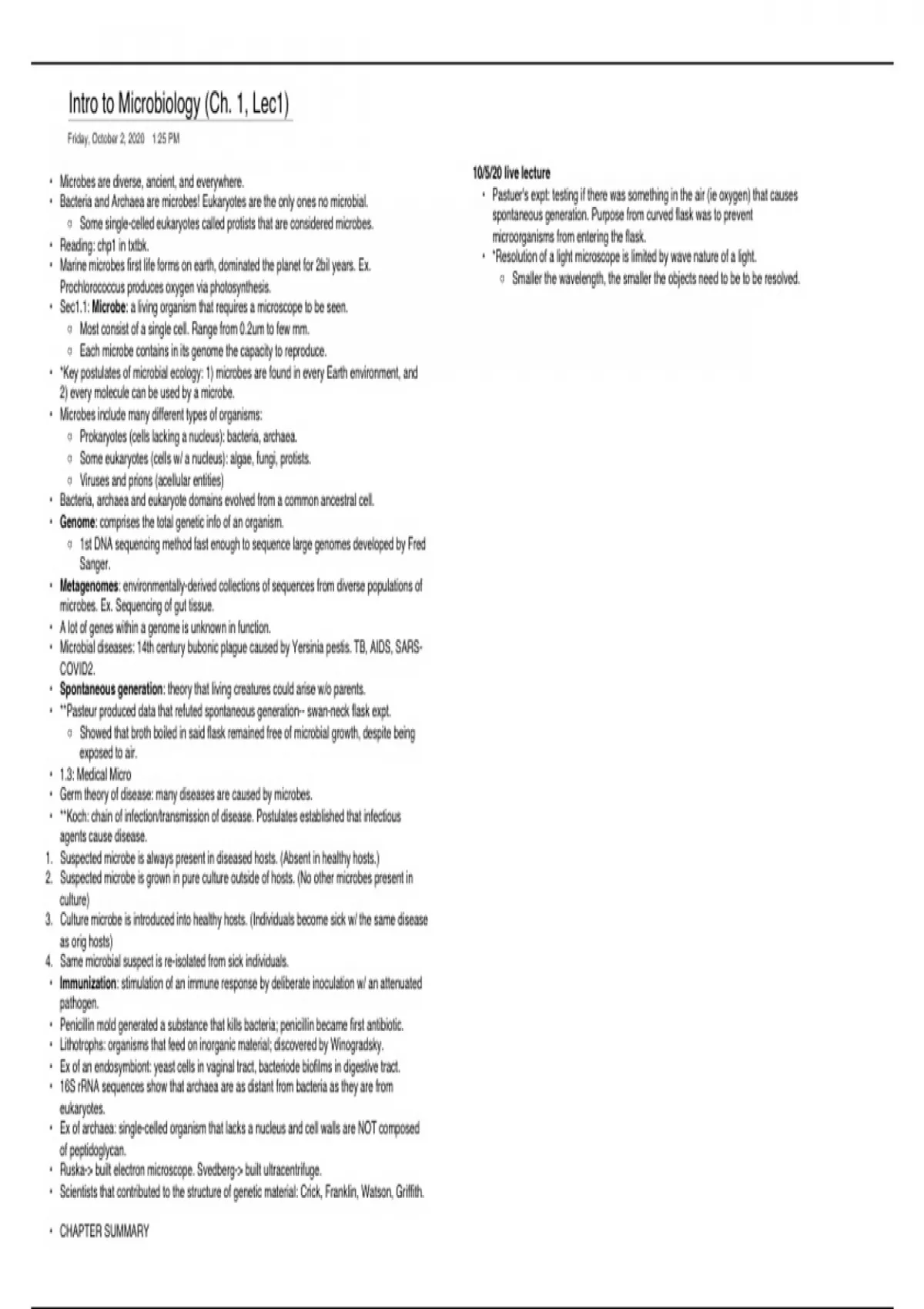 Collection of lecture notes that coincide with chapter readings in Microbiology: An Evolving Science by Joan L. Slonczewski. This textbook was used for the General Microbiology course (BioM122) at UC Irvine. Package deal covers all textbook sections, except for "Microbial Metabolism III" (lecture 9). Made by a biology student that received an "A-".