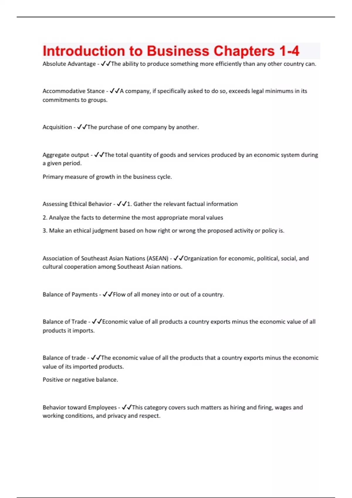 Introduction to Business Ch. 1-6 questions with100% verified answers