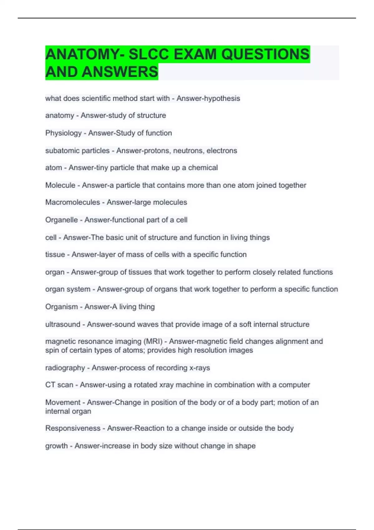 SOCIOLOGY (SPENCER BLAKE, SLCC) TEST #3 QUESTIONS AND ANSWERS 2 Exam (elaborations) SLCC PHYSIOLOGY EXAM #3 (CH. 12-16) QUESTIONS AND ANSWERS 3 Exam (elaborations) SLCC PHYSIOLOGY 2425 LAB FINAL JACK LATER EXAM QUESTIONS AND ANSWERS 4 Exam (elaborations) SLCC PATHOPHYSIOLOGY EXAM #2 STUDY GUIDE QUESTIONS WITH COMPLETE ANSWERS 5 Exam (elaboratio