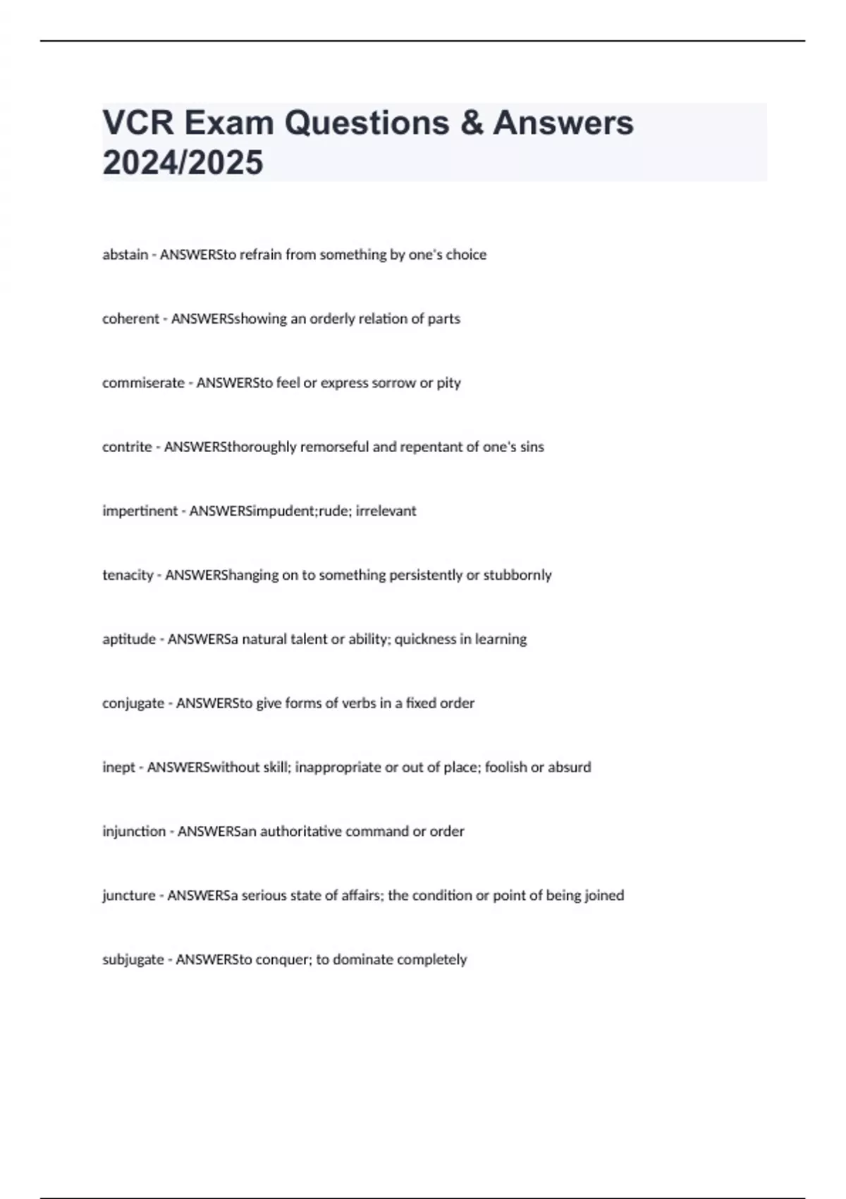 VCR Exam Questions & Answers 2024/2025