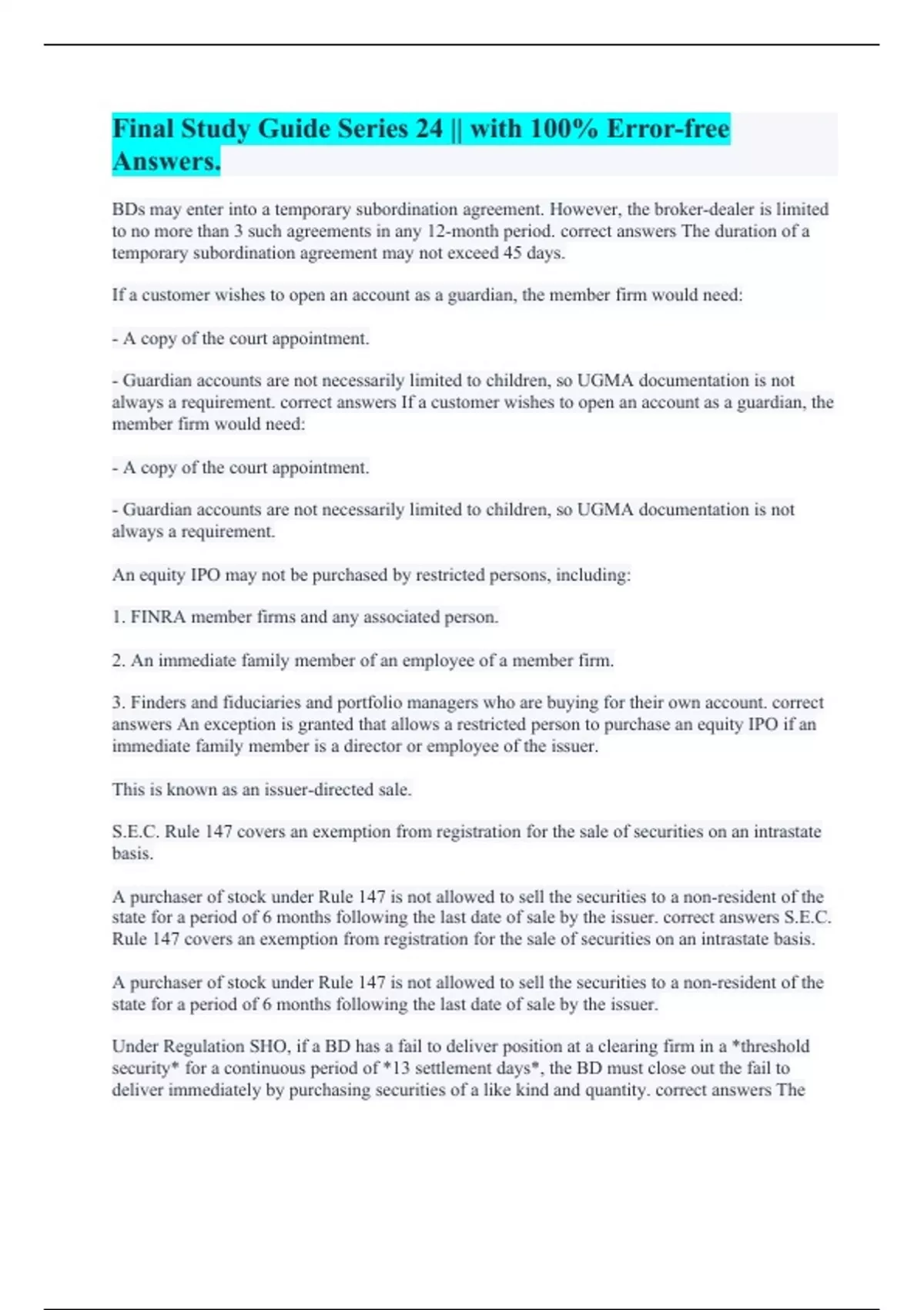 Series 24 - Customer and Margin Accounts || with Errorless Solutions 100%. Final Study Guide Series 24 || with 100% Error-free Answers. FINRA Series 24 || with Complete Solutions. Q&As Final Exams 1 & 2 Series 24 || with Complete Solutions. Series 24: dates/numbers || with A+ Guaranteed Solutions. Series 24 timeframes || with 100% Errorless Answers