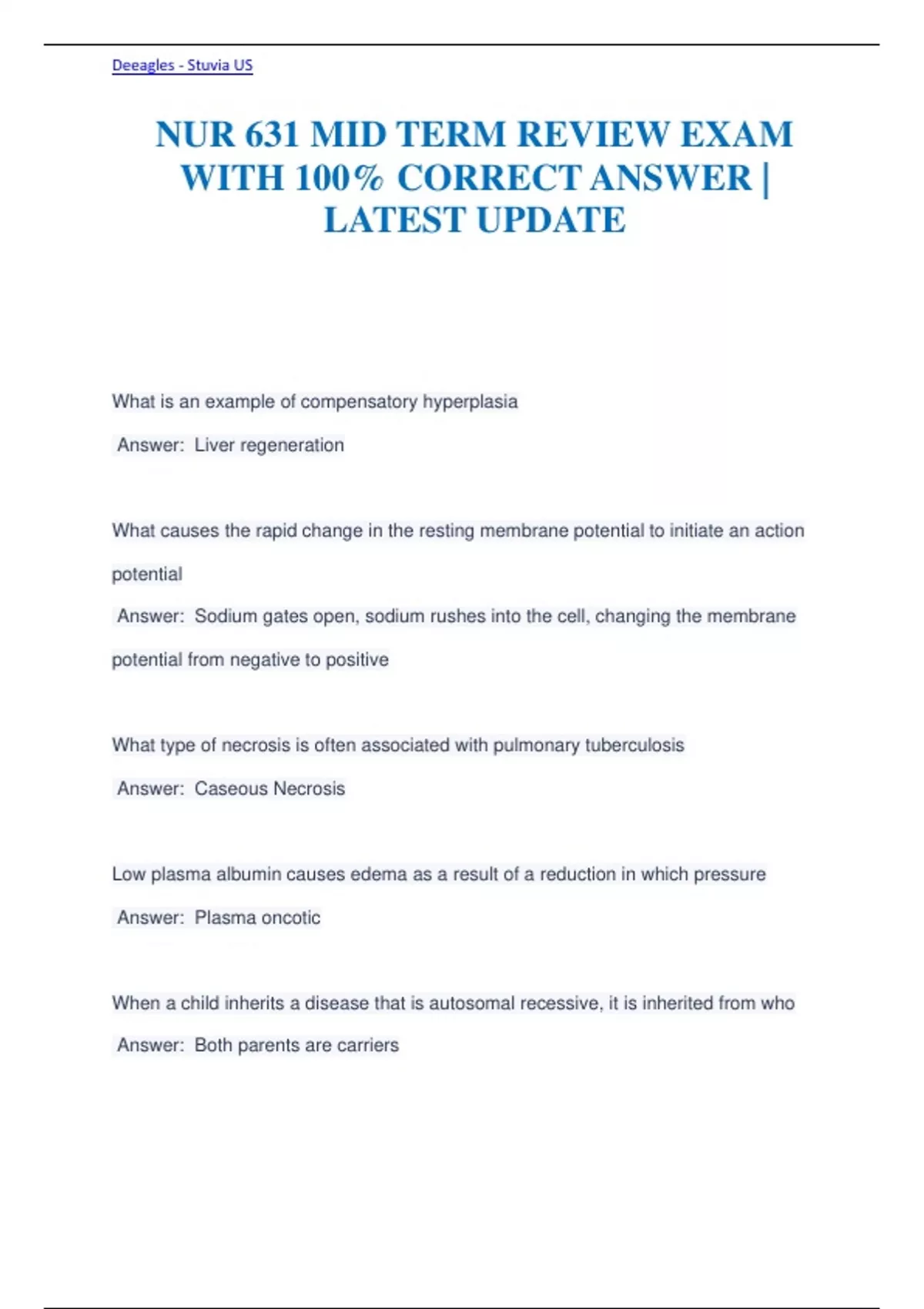 NUR 631 MIDTERM REVIEW EXAM WITH 100% CORRECT ANSWER | LATEST UPDATE