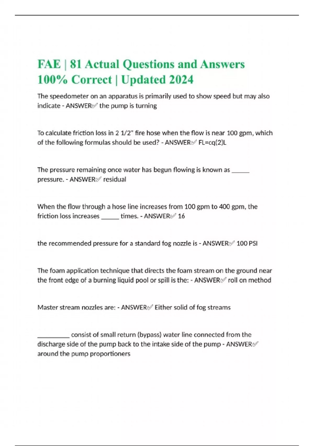 FAE | 81 Actual Questions and Answers 100% Correct | Updated 2024