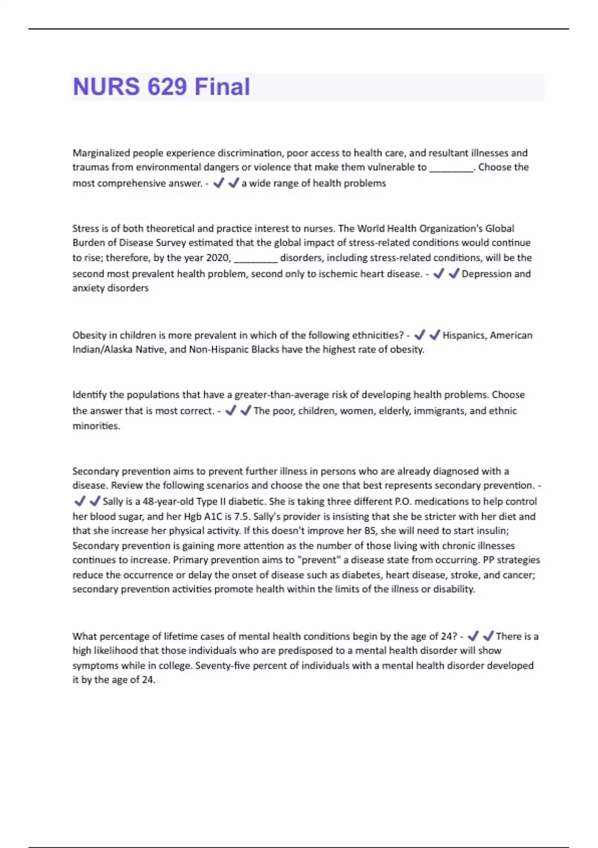 NURS 629 Final Questions and Answers Latest;(2024/2025)/ Graded A+
