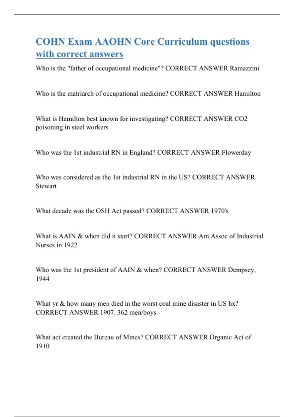 COHN Exam AAOHN Core Curriculum questions with correct answers