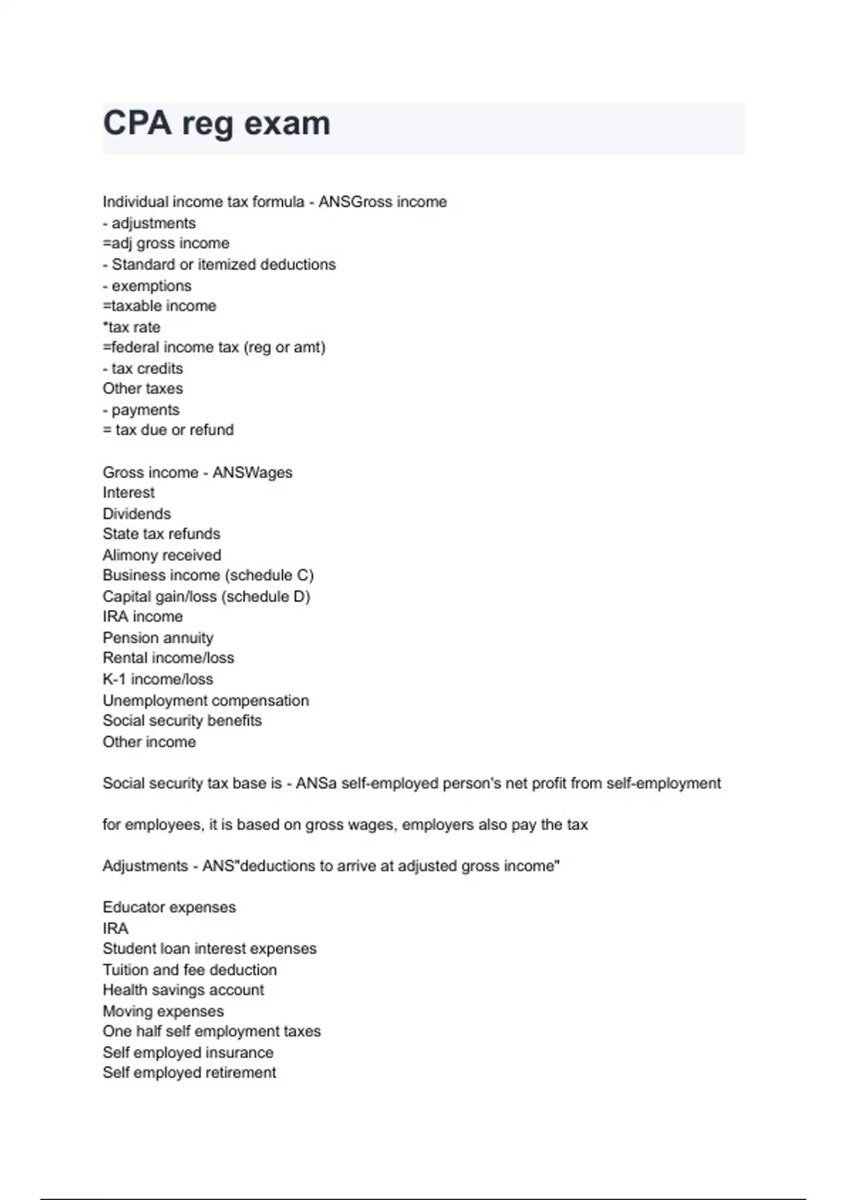 CPA Reg 2024/2025 QUESTIONS WITH ANSWERS RATED A+ (ALL BUNDLED HERE!!!)