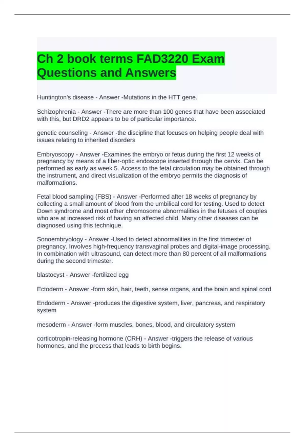 FAD 3220 FINAL EXAM CH 10 QUESTIONS AND ANSWERS