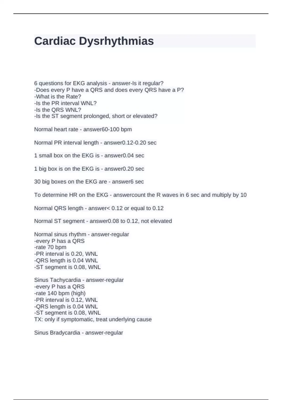 cardiac dysrhythmias Exam Bundle Graded A+