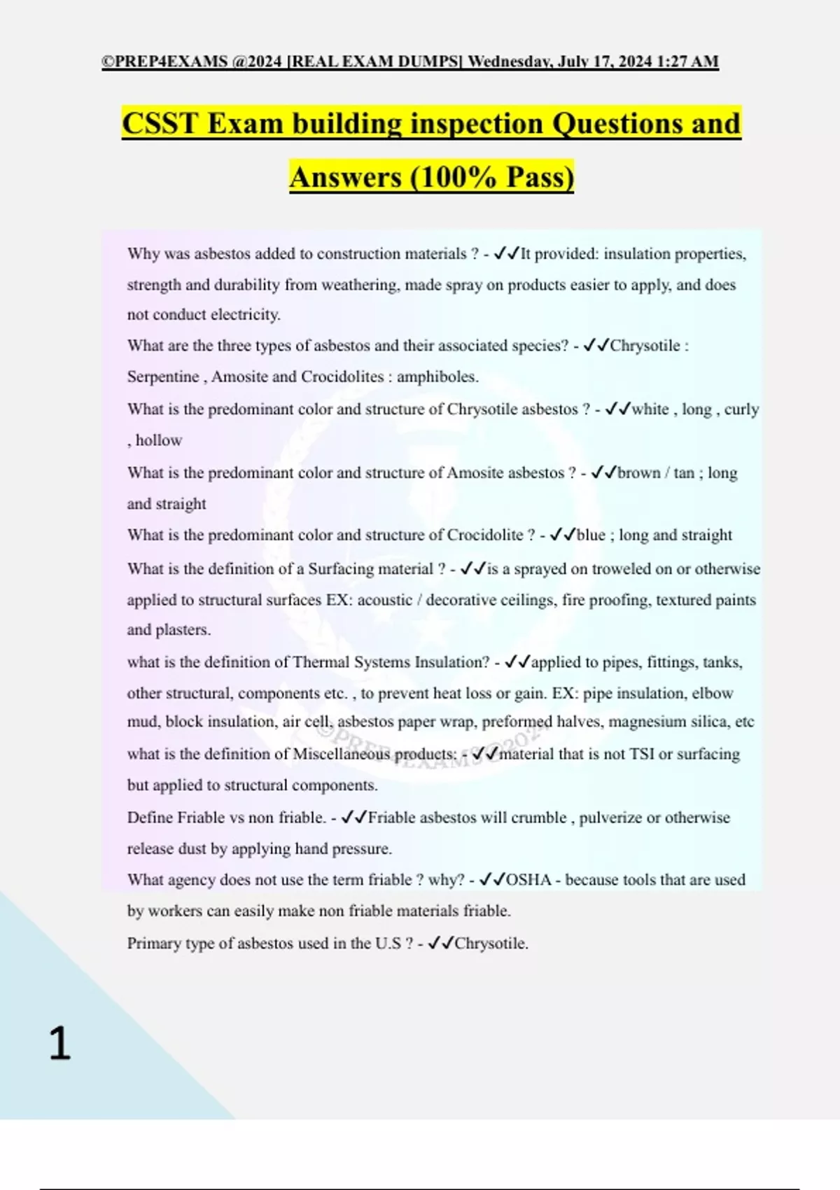 CSST Exam building inspection Questions and Answers (100% Pass)
