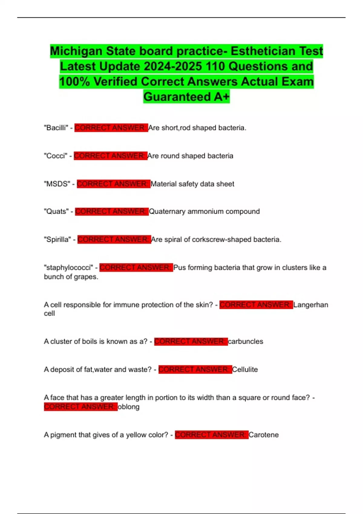 MICHIGAN MI Esthetician State Board Exams 6 Versions Bundled Together